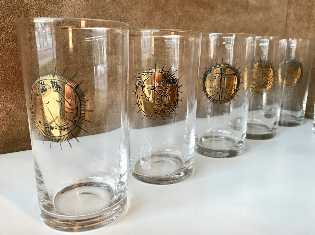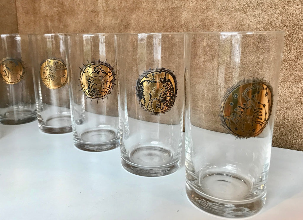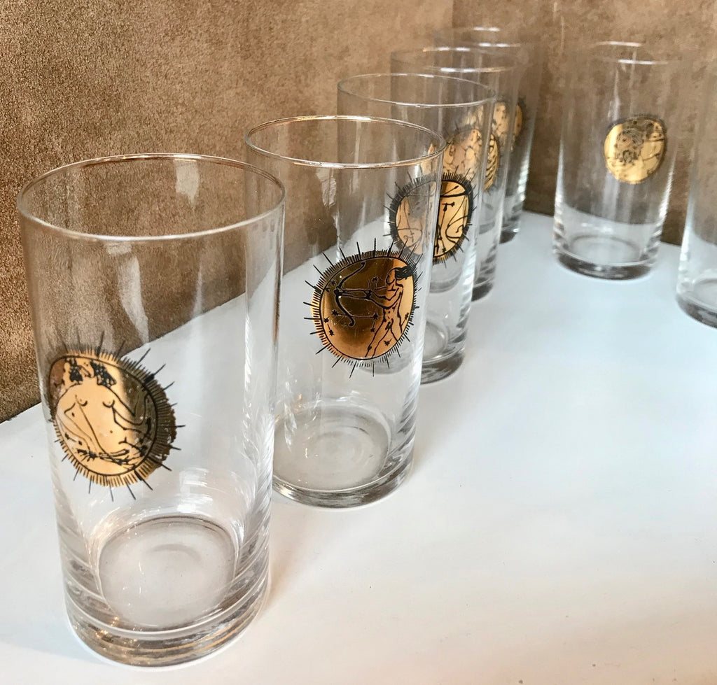 Fornasetti Mid Century Brass Zodiacal Characters S/8 Glasses , Italy 1960s