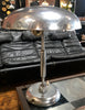 Mid-Century Modern chrome adjustable desk light. Italy 60s Very sculptural yet practical. Base diameter is 7 inches, the dome shade itself is 12 inches wide.